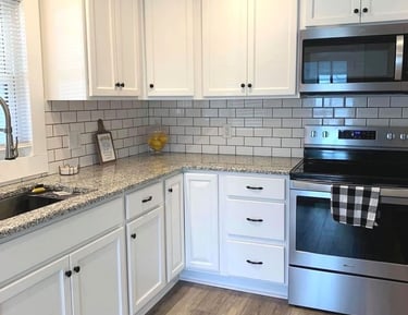 Transform your kitchen with a flawless, factory finish spray on all cabinet surfaces.