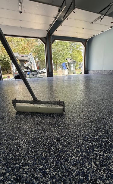 Transform your garage into a durable, high gloss space with our premium epoxy coating system.